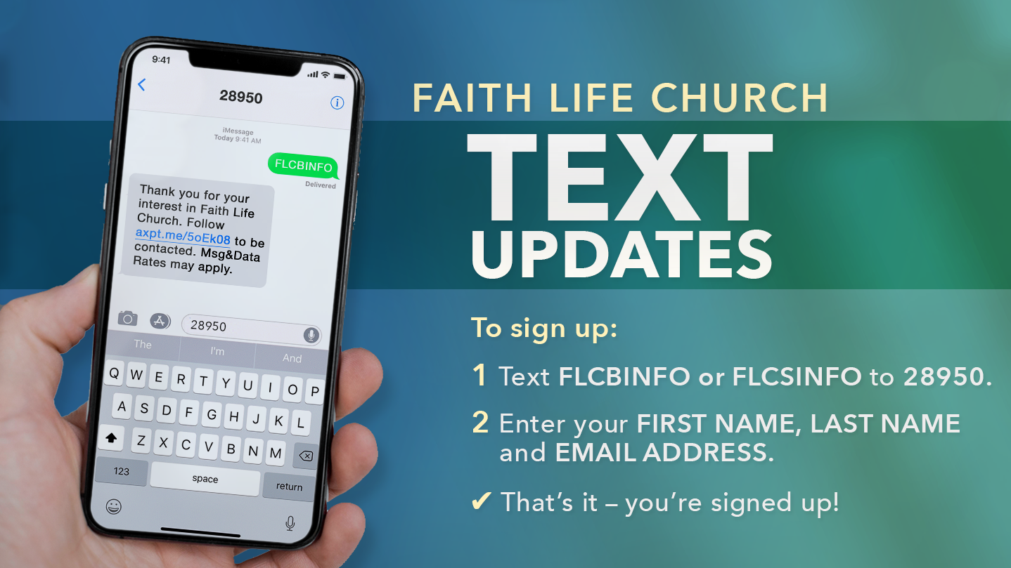 If you consider Faith Life to be your home church, fill out our Family Information Form and join our text alerts!